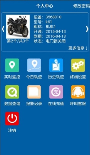 机车游侠是上海锘钛通信科技有限公司为方便用户手机客户端。可支持机车游侠用户查询行驶轨迹、修改终端设置、更改报警方式。查询轨迹,支持查询历史轨迹、最近一小时轨迹。终端设置,可以修改打开电门锁方式,修改布防状态,修改振动级别。