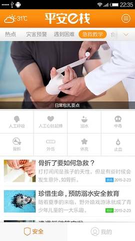平安e栈是专为校园师生打造的急救教育服务平台。软件功能强大,为师生们提供各种急救知识和急救方法,还提供险情预警、预报等功能,帮助师生们更好的处理各种紧急情况,赶快下载体验吧!