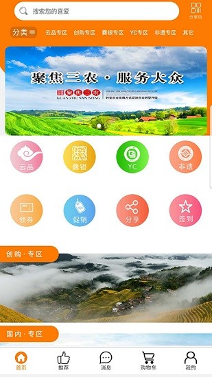 云品创购海量的农产品尽在这里,有自营的产品也有第三方的产品,你可以按照分类去选购想买的农产品,同时还可以直接搜索关键词查找。自营的产品都是有保障的,都是原产地直接运输,保障了安全。这里也有很多优惠可以使用哦,欢迎有需要的朋友下载使用!