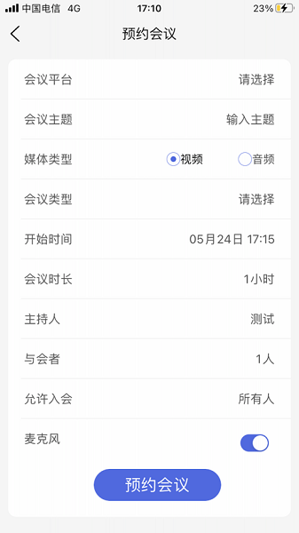 4、持会议预约、一键入会、导入通讯录、会议管理等功能。