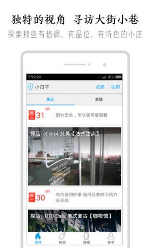 1.小日子将带领用户以独特的视角寻访大街小巷,探索那些有格调、有品位、有特色的小店。
