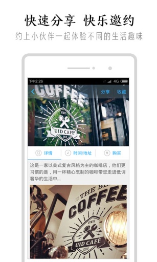 3.快速分享,快乐邀约。约上小伙伴,一体体验不同的生活趣味。