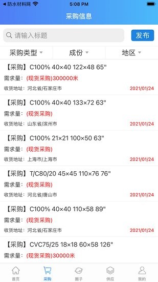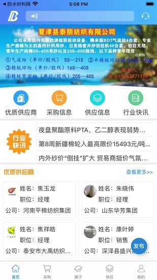 坯布圈APP是河北再循网络科技有限公司是立足坯布行业打造的一款综合交易服务软件,通过坯布圈APP查看供应信息、采购信息、供应商信息、行业资讯等一目了然。