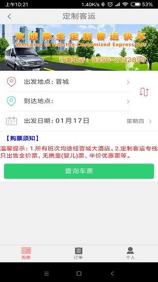3、定制出行,去往晋城的定制快速客车可以随时在线买票。