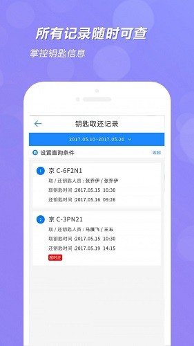 智能钥匙柜app是一款好用的AI智能钥匙柜控制应用.智能钥匙柜app结合手机应用审批功能,需要管理员在预留密钥时向管理员发送申请,审核通过后即可使用,归还钥匙也很容易,您可以通过手机远程控制钥匙柜的开启,归还钥匙后确认归还.