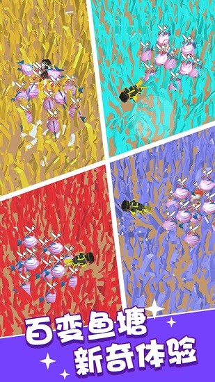 《这片鱼塘我承包了》是一款可以割草养鱼、经营鱼塘,也可以培养军队、激情对战的模拟休闲游戏。玩家可以带领鱼儿去鱼塘吃水草,体验割草般的爽感。获得的鱼肉可以加工成各种食物供售卖,赚取的金钱可以购买更多的鱼儿,也可以扩大鱼塘的规模。在鱼塘经营的过程中玩家会遇到外敌入侵,玩家可以召唤战斗士兵与之对抗,战斗过程中玩家能解锁各种各样强力的士兵更好的抵御外敌,保护自己的鱼塘。