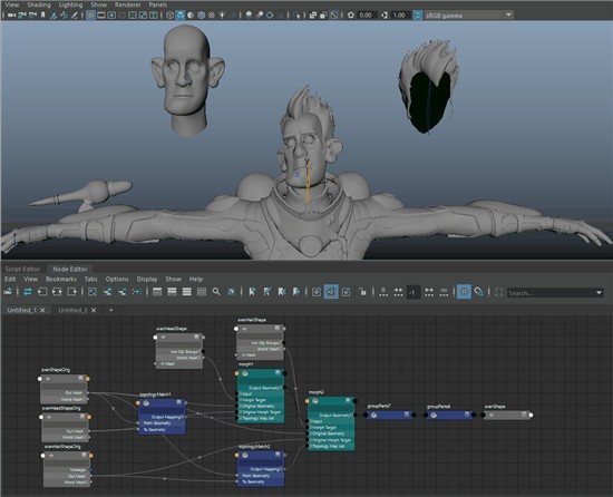 使用新的固化变形器,可以在变形几何体上创建看起来比较坚固的几何体区域,从而可以定义角色衣服的刚性部分,如纽扣或皮带扣。