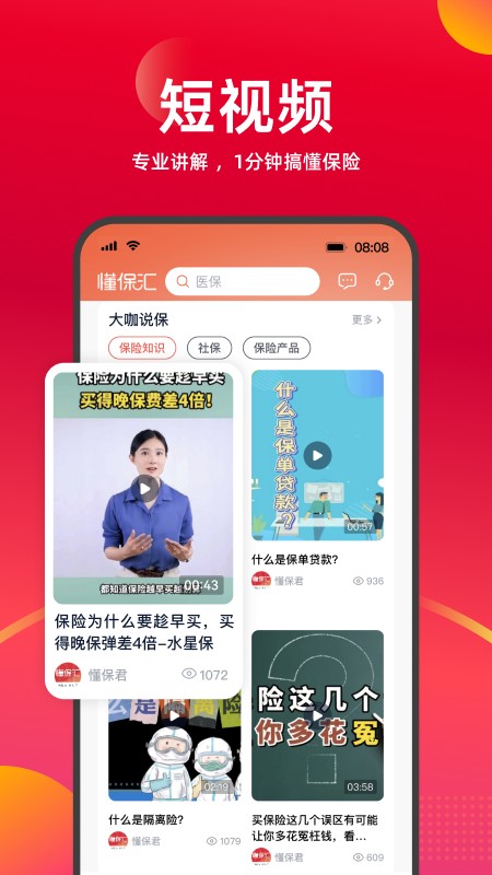 懂保汇app是一款帮助保险销售人员更好精准目标的服务软件,旨在解决代理人在销售过程中的痛点,我们的使命是帮助代理人更高效,更简单,更有尊严的售卖。懂保汇,贯彻先懂保,再投保的理念,帮助每一位消费者买的明白,买的放心。