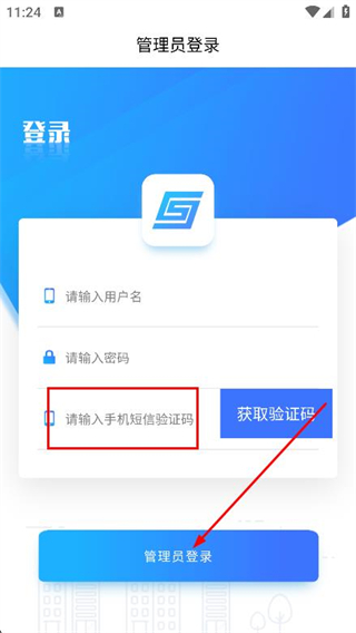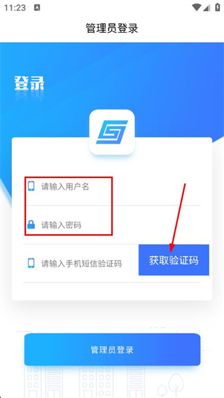 2、输入管理员用户名和密码,并点击下方获取验证码。