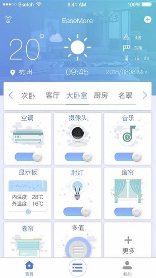 EaseHome基于物联网为你打造最强的智能控制终端,让家中的一切随心所动,通过手机软件就能轻松操控家里的所有家居,还能自动的调节湿度温度以及灯光控制,播放音乐等等,更是开启了智能语音控制等等内容。