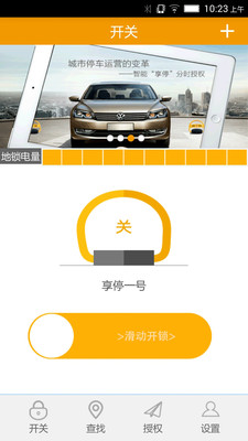 享停app是一款汽车智能锁遥控,能够帮助用户进行快捷锁车,快速帮助用户找到自己停车的位置,快速找车,不用在停车场到处找寻自己的爱车了。该应用可以授权车位,用户可以将自己车位授权给自己亲朋用,可以与自己分时间使用该车位。操作简单,使用便捷。有需要的用户赶紧下载使用吧~
