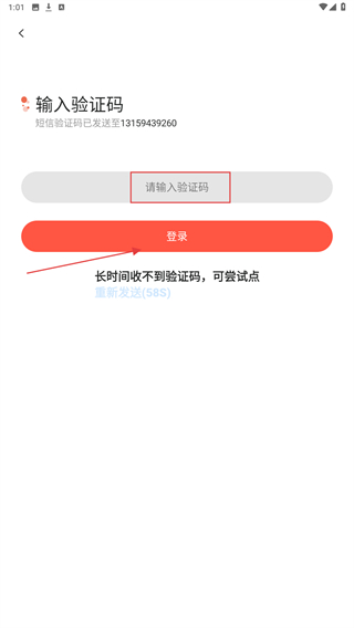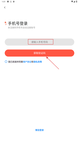 3、在手机号登录界面的输入框中填写目标手机号,点击获取验证码按钮。