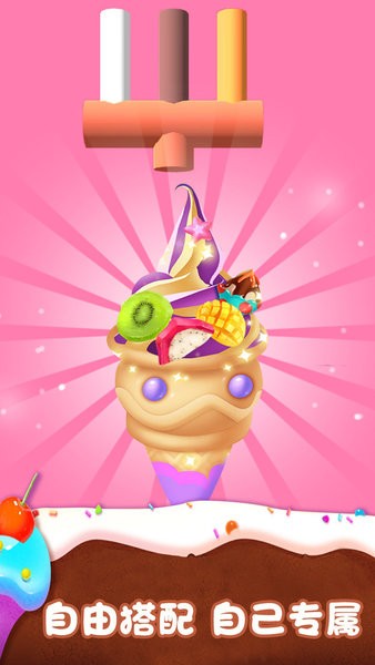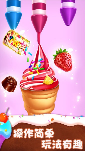 这是以制作冰淇淋为题材的休闲游戏,游戏画面清新简洁、玩法简单充满创造力。玩家需要通过操控冰淇淋机和制作材料材料来制作各种口味的冰淇淋,超丰富的冰淇淋制作原料,通过不同的组合搭配出全新品种,发挥你的想象力和创造力,满足不同顾客的口味需求,成为优秀的甜品大师。