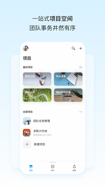 -- 快速立项:明确工作目标并创建项目 ,邀请团队成员加入项目一起来开展工作;