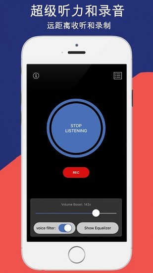 一个强大的助听器。使用这款麦克风放大器为您的耳朵充电并增强听力。以增强的方式聆听您周围的世界,就像您以前从未听说过一样。hear boost 为您提供放大的超级听力和录音能力,轻松捕捉远处的声音和对话。赋予您的耳朵超能力。聆听和录制高达 200 倍的麦克风通常拾取的声音。