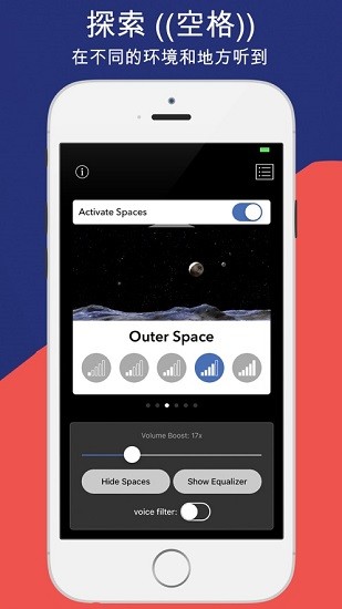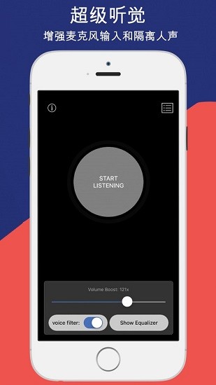 hear boost最新版作为非常强大的助听app,可以将声音进行增强扩大,支持对声音进行过滤,远离外界噪音,从烦躁的声音中提取有效音量,让有需要的人可以更清楚的听到人声,喜爱的朋友赶快下载体验吧!