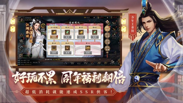 放置挂机轻松护肝,一键获取丰厚养成资源,培养侠客不再难。随玩随停,告别复杂日常任务。