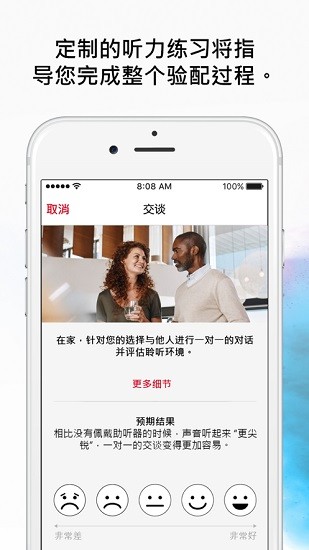 此外,听力练习能帮助您更快地适应助听器的佩戴过程。您与验配师之间,仅仅是一个按钮的距离,可通过电话或信息交流。