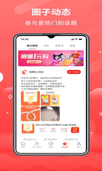 4、你可以在朋友圈中看到多个电商平台的优惠商品,人工精选好货一网打尽;