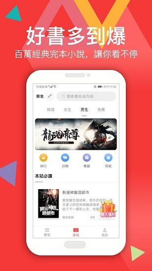 4、精选好书:男女生书城随意切换,类型丰富,好书多多。