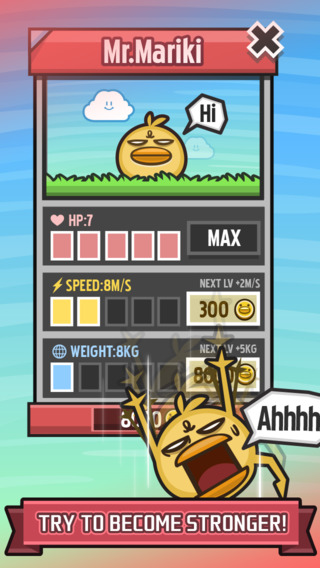 4.玛丽鸡属性:血量,速度和重量。使用场景中获得的鸡币升级。