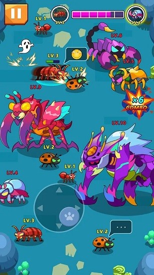 带玩家们进入到一个弱肉强食的昆虫世界中,在这里你需要操控你的昆虫进行不断的吞噬进化才能成功地活下去站在食物链的顶层,一开始不要去挑战大型的昆虫们,需要循序渐进的吞噬才是胜利的正确做法。