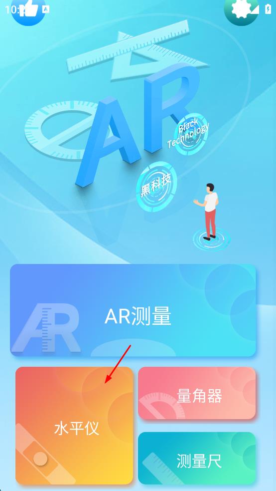 1、打开测量软件,在主界面点击水平仪,进入水平仪功能页面。