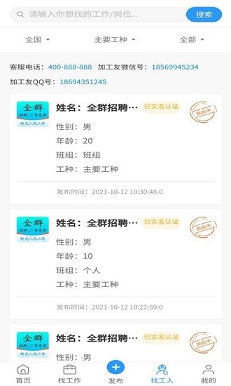 面向各行各业的招聘平台,实时的用工信息,海量的货运、生活服务、广告发布和查询,同时还有相关的人力成本和考勤管理。招聘、求职、找工作、货运信息、二手市场、广告发布等生活服务,覆盖所有城市,汇聚大量个人和商家需求信息。不用等待招聘会,没有中介;真实、高效的直接与老板和用人单位联系沟通。