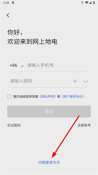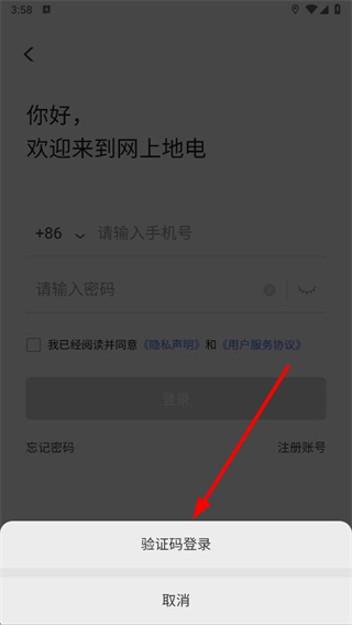 3、在登录注册页面,点击“注册账号”,进入注册页面,输入手机号,点击“发送验证码”。