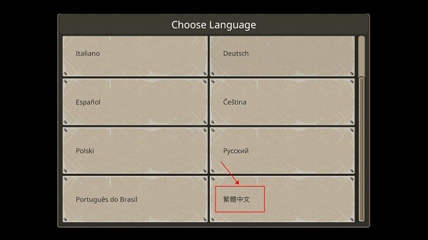 在首次进入游戏时会出现选择语言的提示框,下拉找到并选择“繁体中文”即可将游戏设置为中文。