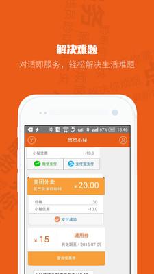 2. 新增我的订单、我的代金券——及时了解您的生活方式,享受悠悠小秘给你带来的方便和实惠;