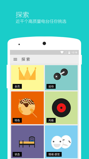 - 时间、地点、运动等共10个大类,100多个小分类,近千个电台随你挑选。