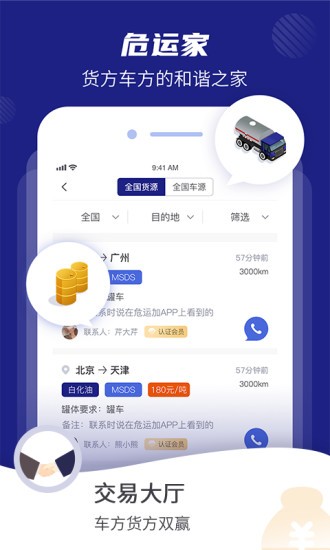 危运加app安卓版提供了便捷的危险品运输服务,货主可以在手机上发布自己的危险品货源招司机帮运,司机用户可以发布自己的车源来找匹配的货进行运输,支持双方在线交易,车辆车源轻松管理,欢迎大家下载使用!