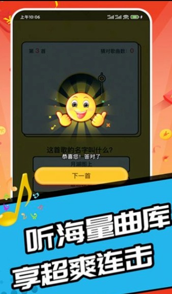 3、无需体力,不需要体力值就可以答题的游戏,赶快来猜歌名。