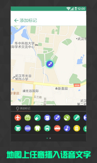 基于地图标记,你可以随心所欲的在地图中加入文字、语音、图片或是别的什么,打造一张专属于你的地图,并可分享给好友。