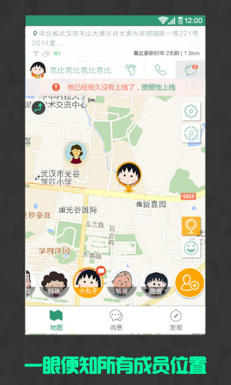 而作为最有爱的定位软件,除了更人性化的亲友定位外,还有一键导航、亲密区域、历史足迹、查找手机、实时聊天等功能,所有功能的设定不仅仅是为了让你更方便的找人,更是帮你守护你在意的人。