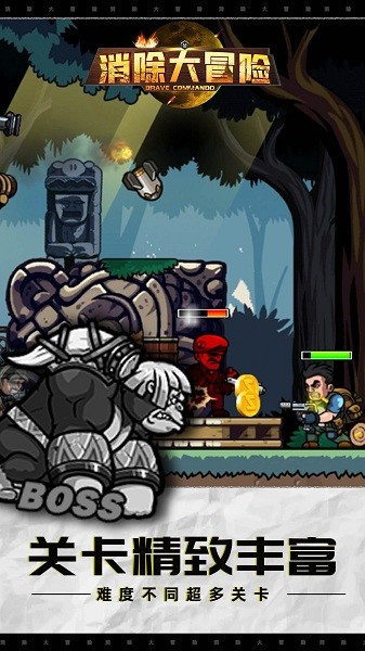 《消除大冒险》是一款动作冒险类的射击游戏,在游戏中,你将以突击队员的角色进行冒险,在不同区域中与成群结队的敌人作战;游戏玩法简单,屏幕上的操纵杆和控制按钮,可以让你很好的控制你的角色,给予敌人致命的打击,随着游戏的进行,你会收获一系列不同的武器,将武器升级,加强你的战斗力,渗透敌方所在地,并摧毁他们。