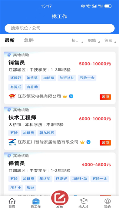 - 每天会在首页推荐优质的岗位,全部都是经过了验证的好岗位,打造成更好的江都人才市场;