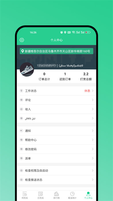 4、工作状态掌握,骑手可以随意的切换自己的上班和下班状态;
