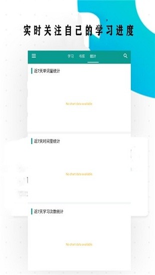 可以查询自己的日常学习情况和每本书学到的单词。
