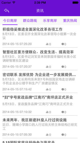 1.智慧南岸APP运用了国内领先的互动管理系统,市民可通过文字、图片、视频等形式实现与南岸区政府部门的互动