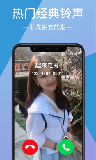 【来电视频动态秀】是一款设置来电视频功能的来电秀软件,当别人来电话时,屏幕就会播放炫酷的来电视频,你就是整条街上更靓的仔。海量手机铃声来电视频,轻松一键设置。海量的来电秀视频和铃声供你选择,让你嗨来电尽情嗨。每日更新全网更火更热的手机铃声、来电闪光灯、来电彩铃、短信闹铃、来电动画、来电动态壁纸、来电动态主题等,紧跟潮流不掉队,让你随时随地秀来电,来电秀秀不停!还可以制作专属于你的来电视频和来电铃声。