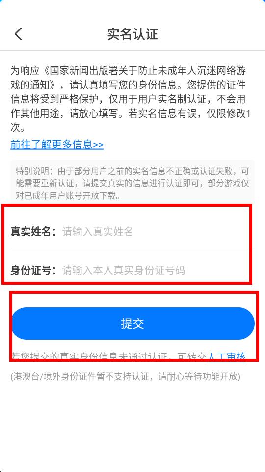 3、在实名认证页面,输入真实姓名和身份证号,确认信息无误后点击提交。