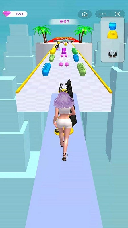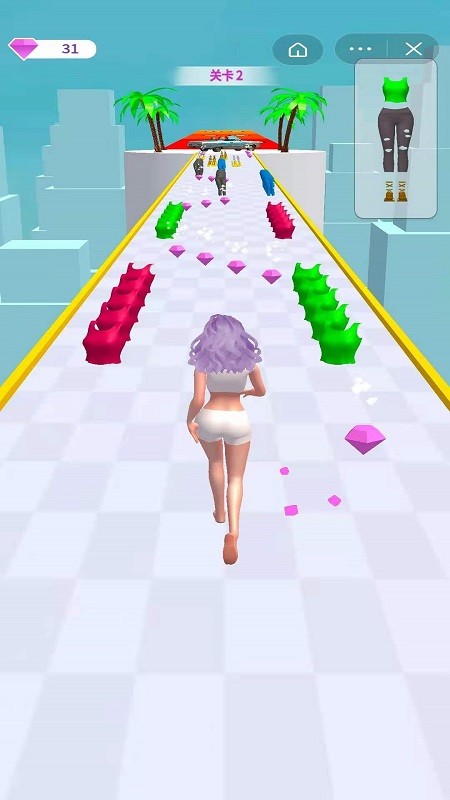 时尚休闲跑酷类游戏,玩家扮演的是一个时尚达人,玩家在游戏中需要根据场景提示控制自己角色选择合适的装扮,还可以用积累的钻石去换取道具和皮肤,途中也会遇到一些障碍,跨过障碍顺利到达终点上车即可获得胜利。