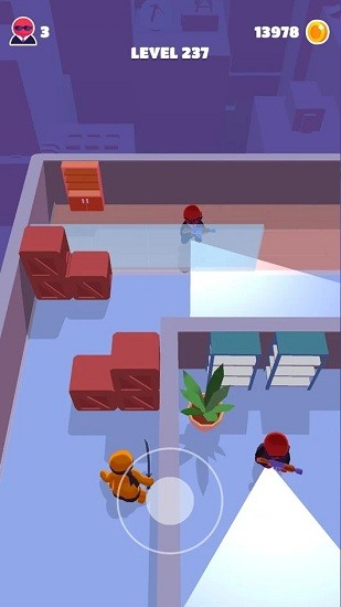 隐形大师是卡通冒险类的游戏。最为一名藏在暗处的刺客,我们需要到大楼中找到一些线索,跟随者任务的提示。绕靠敌人的视野,凡是还是小心谨慎的为好。千万不要吸引敌人的注意力,被发现等于就宣告了死刑。将敌人一个个的暗杀,轻松的潜入才是最好的办法!