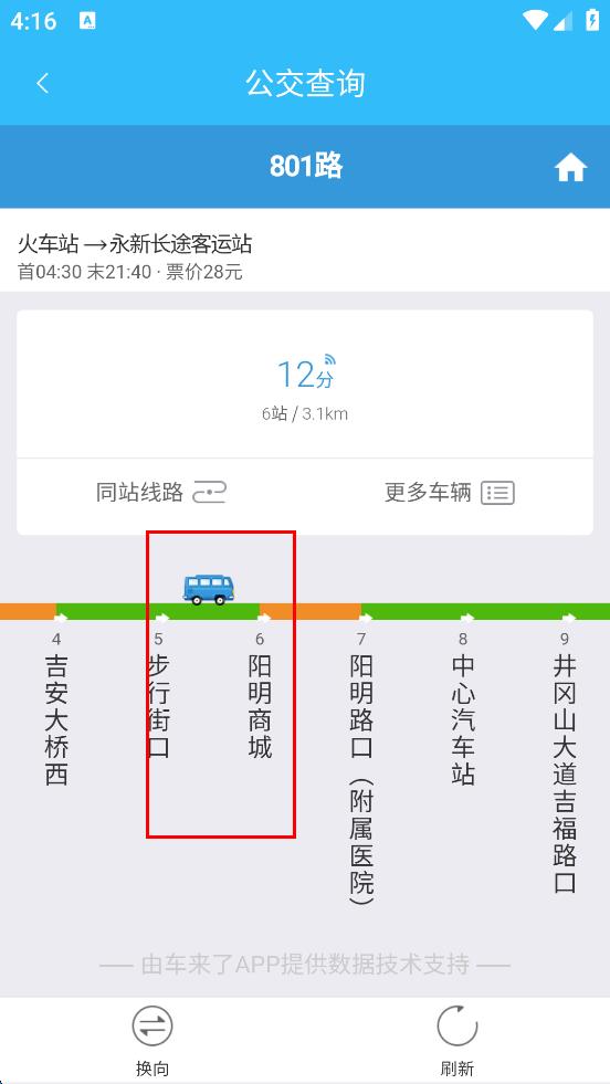 3、进入公交详情页面后,可查看该线路的首末班时间、票价以及途经站点等信息,还能看到车辆的实时位置等情况,方便了解公交的运营状态。