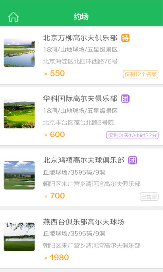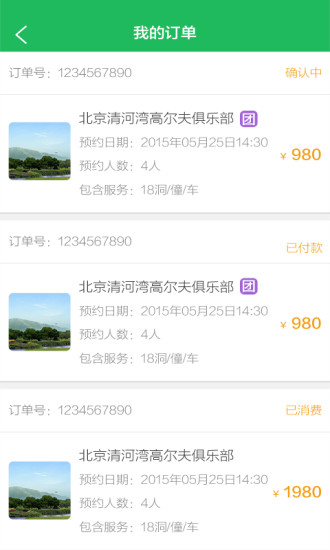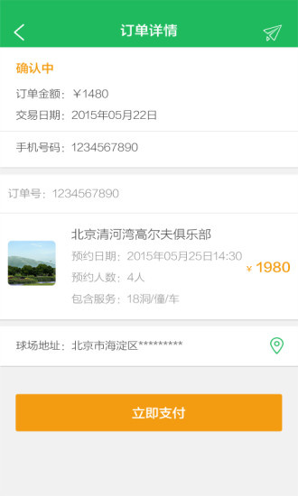 2.提供高尔夫球订场服务:用户通过登录APP浏览签约的球场,并通过APP直接下单订购打球场地、时间。