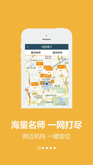 4.精准的LBS定位,一键搜索附近老师:脱离线下地域限制,精准定位,提供最近范围的老师资源,方便选择
