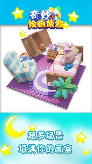 奇妙绘画旅程手游,游戏的色彩设计的非常好看,并且你可以在游戏中进行各种3d1的涂色,就和做模型手办一样,做完后对这些物品进行各种个人色彩的创作上色,你可以随意的按照自己的审美搭配出自己想要的颜色出来,成为一个绘画小天才。
