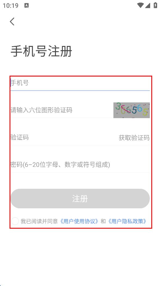 4、在手机号注册页面,依次输入手机号、六位图形验证码、获取的短信验证码以及设置密码,然后点击“注册”按钮完成注册。
